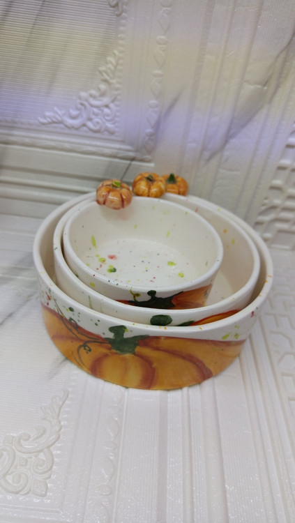 هر سه سایز طرح برجسته کدو طبق عکس روی کاسه دارند