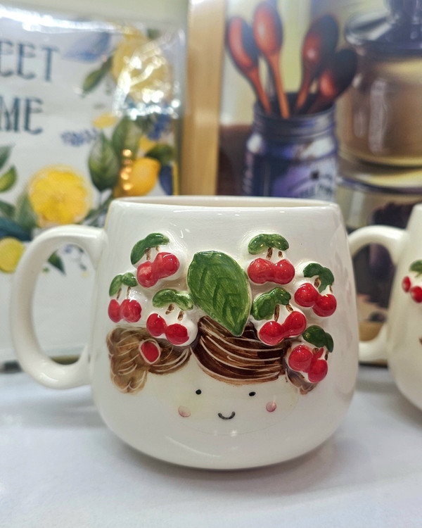ماگ سرامیکی خوشگل دختر آلبالویی برجسته