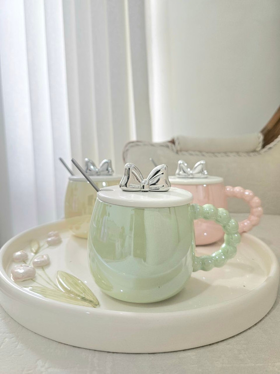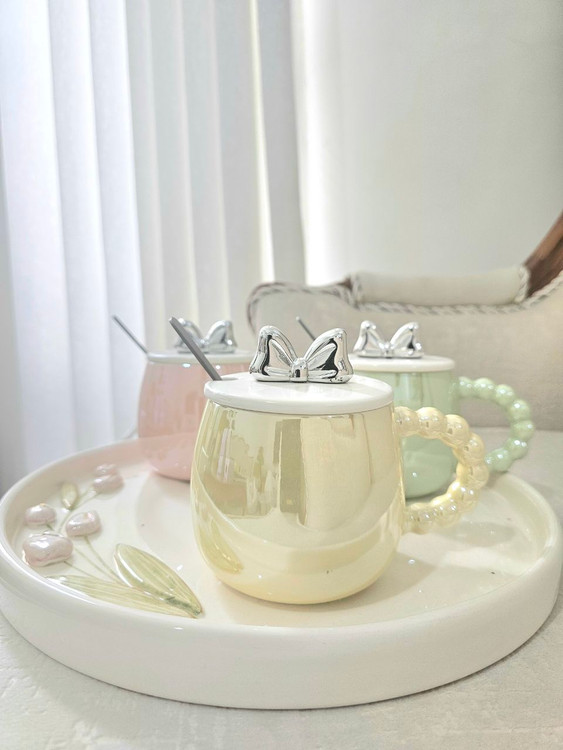 ماگ درپاپیونی دسته مروایدی سرامیکی