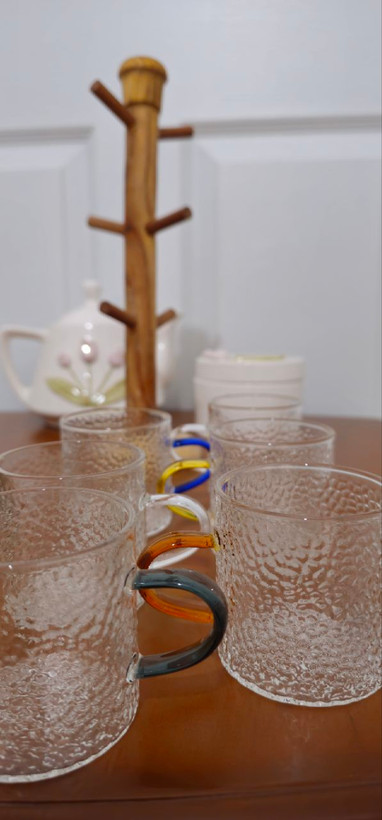 قهوه خوری پیرکس شیشه ای برفی دسته رنگی