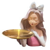 مجسمه دختر سینی به دست پاپیونی صورتی