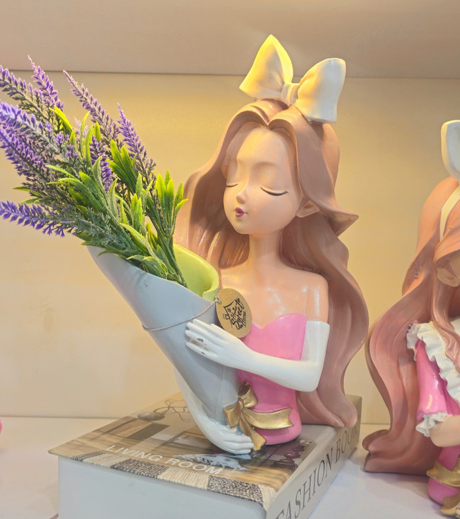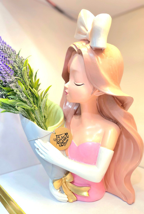 مجسمه و گلدان دختر پاپیونی صورتی
