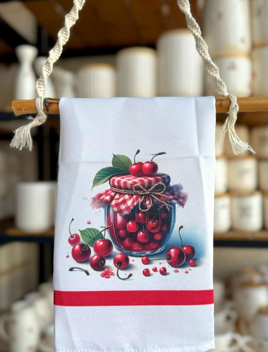 دستمال دکوراتیو آشپزخانه طرح آلبالو وارداتی